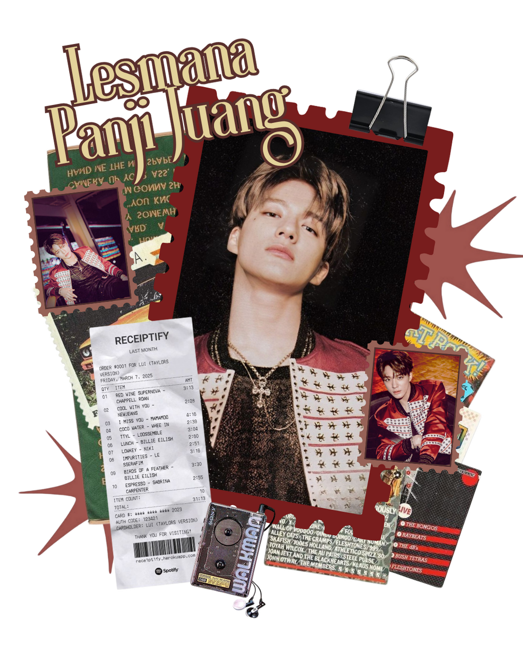 Bonus Track — Iris – Goo Goo DollsSelain itu, saya juga seorang pendengar kasual yang senang menjelajahi berbagai warna suara dari, The Rose, The 1975, Bon Jovi, Jannabi, SZA, Honne, Wave to Earth, Lauv, Valley, Imagine Dragons, Cigarettes After Sex, Chase Atlantic, Troye Sivan, NIKI, Paramore, Taylor Swift, Ed Sheeran, Frank Ocean, Justin Bieber, One Direction, The Script, Kendrick Lamar, Maroon 5, Yoasobi, Koven Wei, Arash Buana, Sal Priadi, Kunto Aji, Dewa 19, Kahitna, Nadhif Basalamah, dan Slank.Untuk KPOP, saya mendengarkan SHINee, EXO, SEVENTEEN, NCT, WAYV, THE BOYZ, STRAY KIDS, ATEEZ, TXT, TREASURE, ENHYPEN, MONSTA X, RIIZE, XDINARY HEROES, BOY NEXT DOOR, ZEROBASONE, TWS, ALD1, EAJ, CORTIS, ALSNSD, GFRIEND, VIVIZ, RED VELVET, (G)I-DLE, TWICE, STAYC, ITZY, WEEEKLY, AESPA, NMIXX, IVE, MEOVV, dan HEART2HEART.